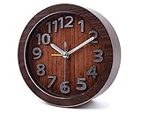 gardenlightess 目覚まし時計 アナログ表示 石英 木目調 ダークブラウン